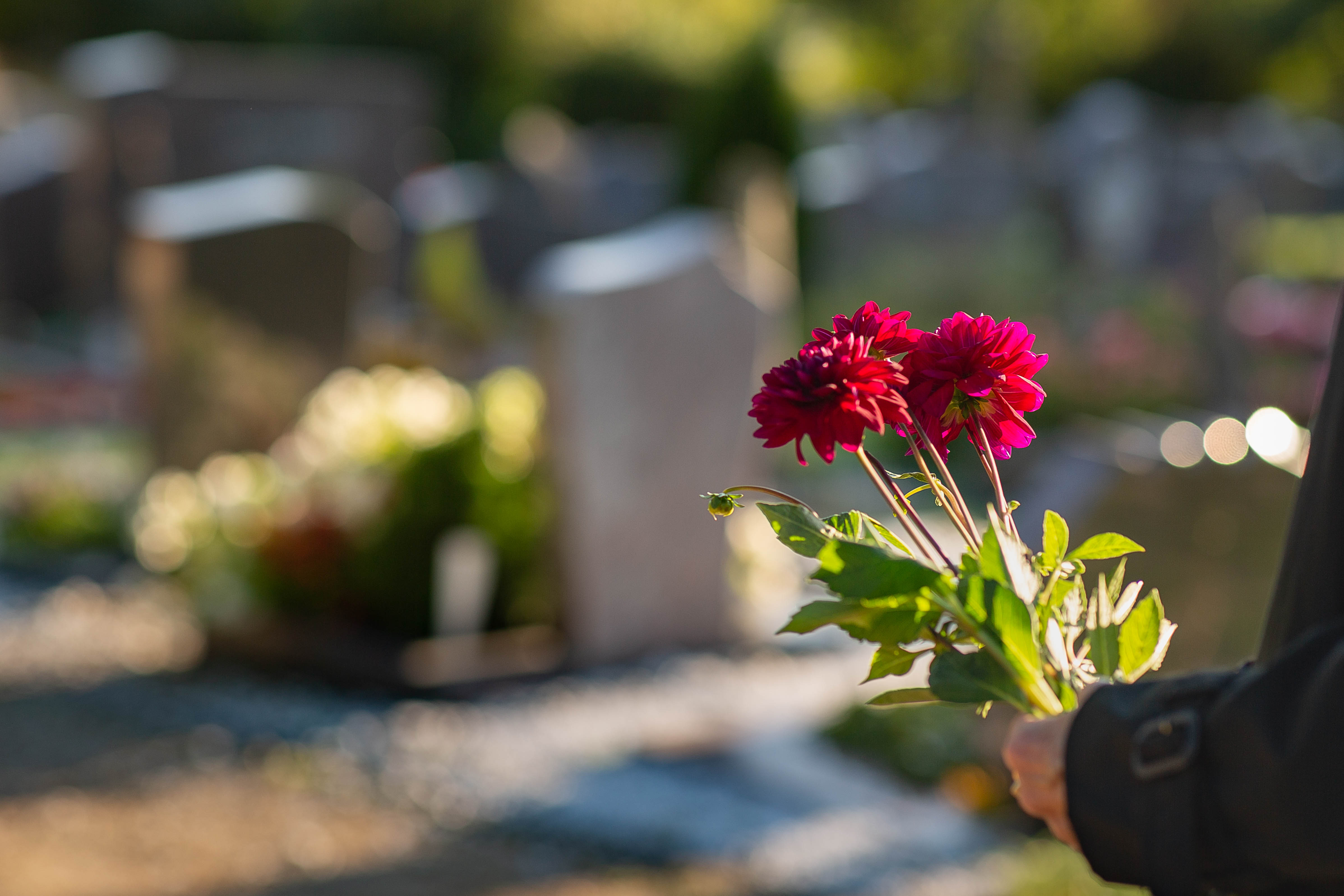 Grabsteine auf dem Hauptfriedhof - Der im Jahr1843 eroeffnete Hauptfriedhof Kassels befindet sich im Stadtteil Nordholland. Mit Gruenanlagen mit viel Baumbestand und botanischen Besonderheiten bietet er Besuchern die Moeglichkeit zu Trauern und Abschied zu nehmen. Ueber den ganzen Friedhof verteilt gibt es Statuen und Skulpturen zu sehen. Der Friedhof gehoert dem evangelischen Stadtkirchenkreis an.