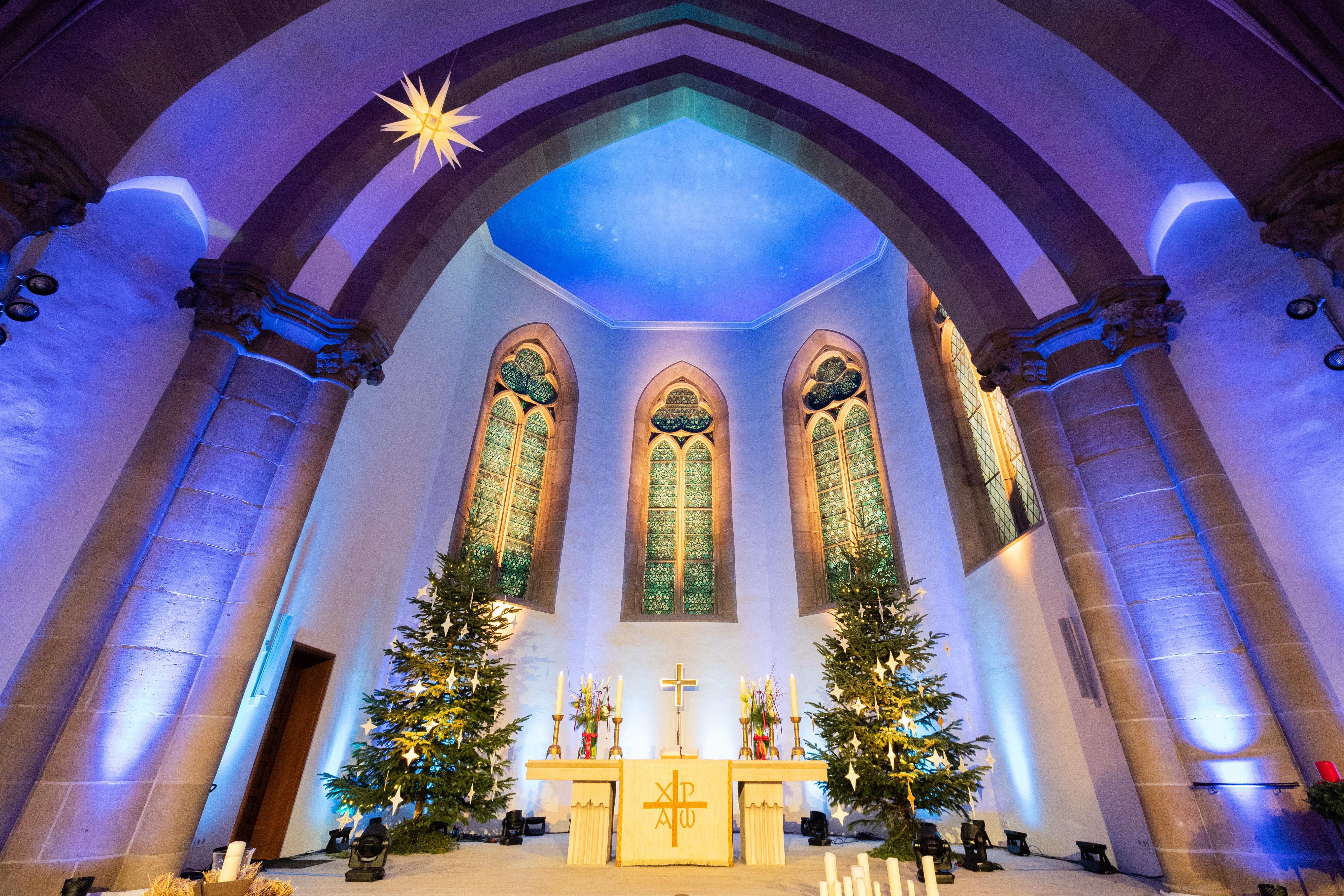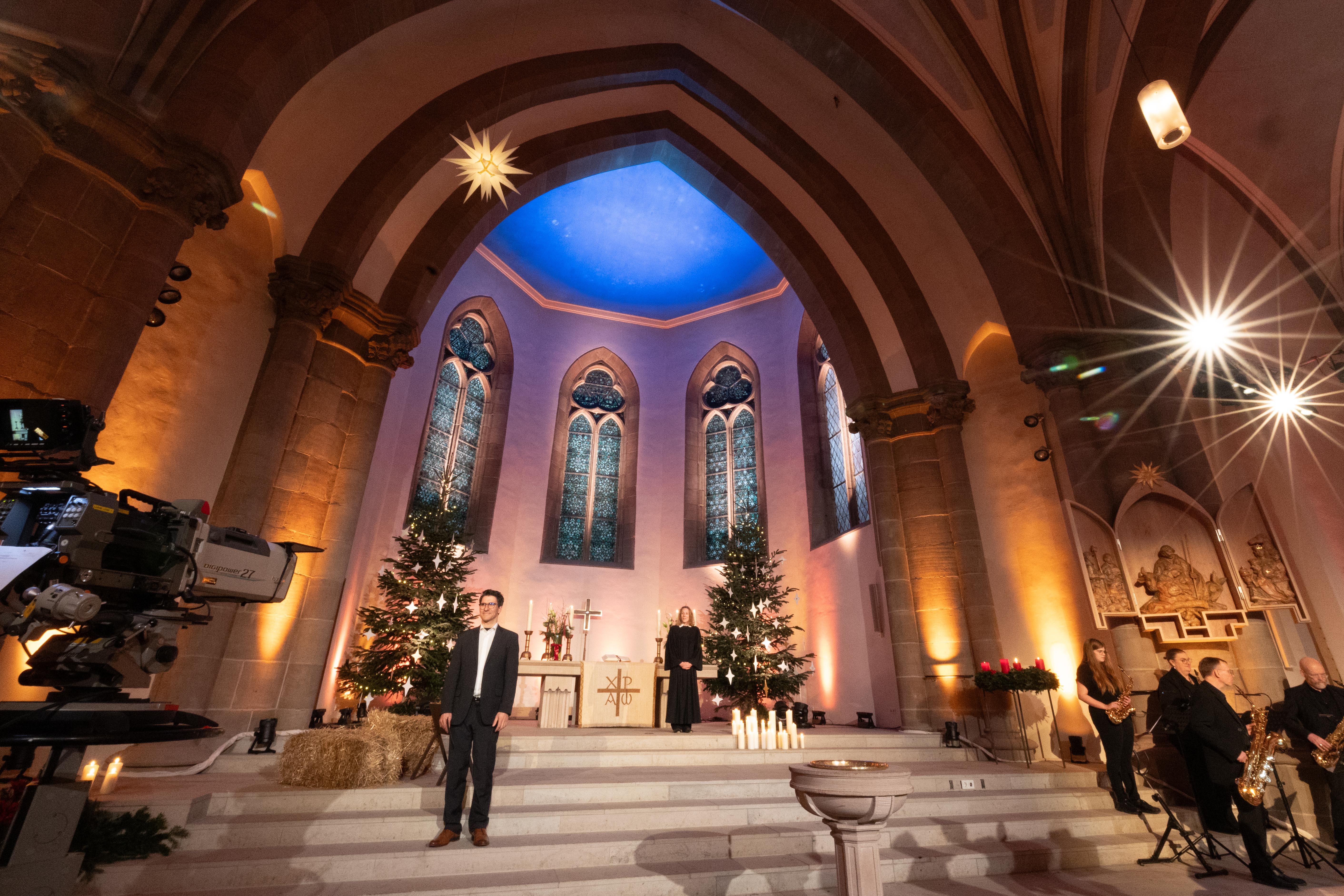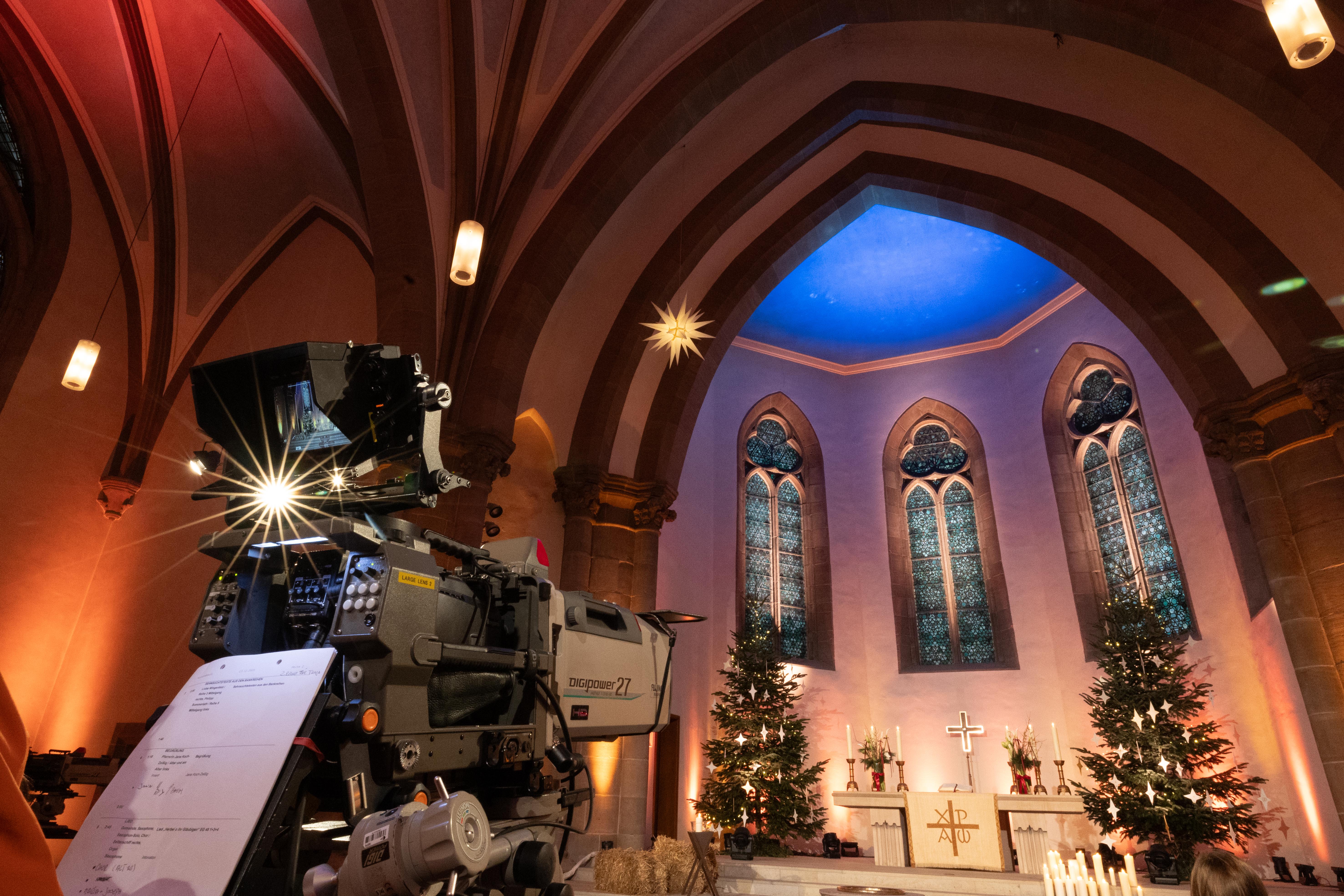 Die Christuskirche in Fulda - Generalprobe zum Evangelischen Heilig-Abend-Fernsehgottesdienst im ZDF mit Pfarrerin Jana Koch-Zeißig unter dem Motto: „Wonach suchst Du?“. Die Weihnachtsgeschichte wird gelesen vom Schauspieler und Theaterpädagogen Thomas Hof, für den weihnachtlichen Glanz sorgt ein Saxophonquintett. Es singt eine Auswahl des Kammerchores der Christuskirche Fulda unter der Leitung von Stefanie Muhl. Der Organist ist Bezirkskantor Tobias Wirth.