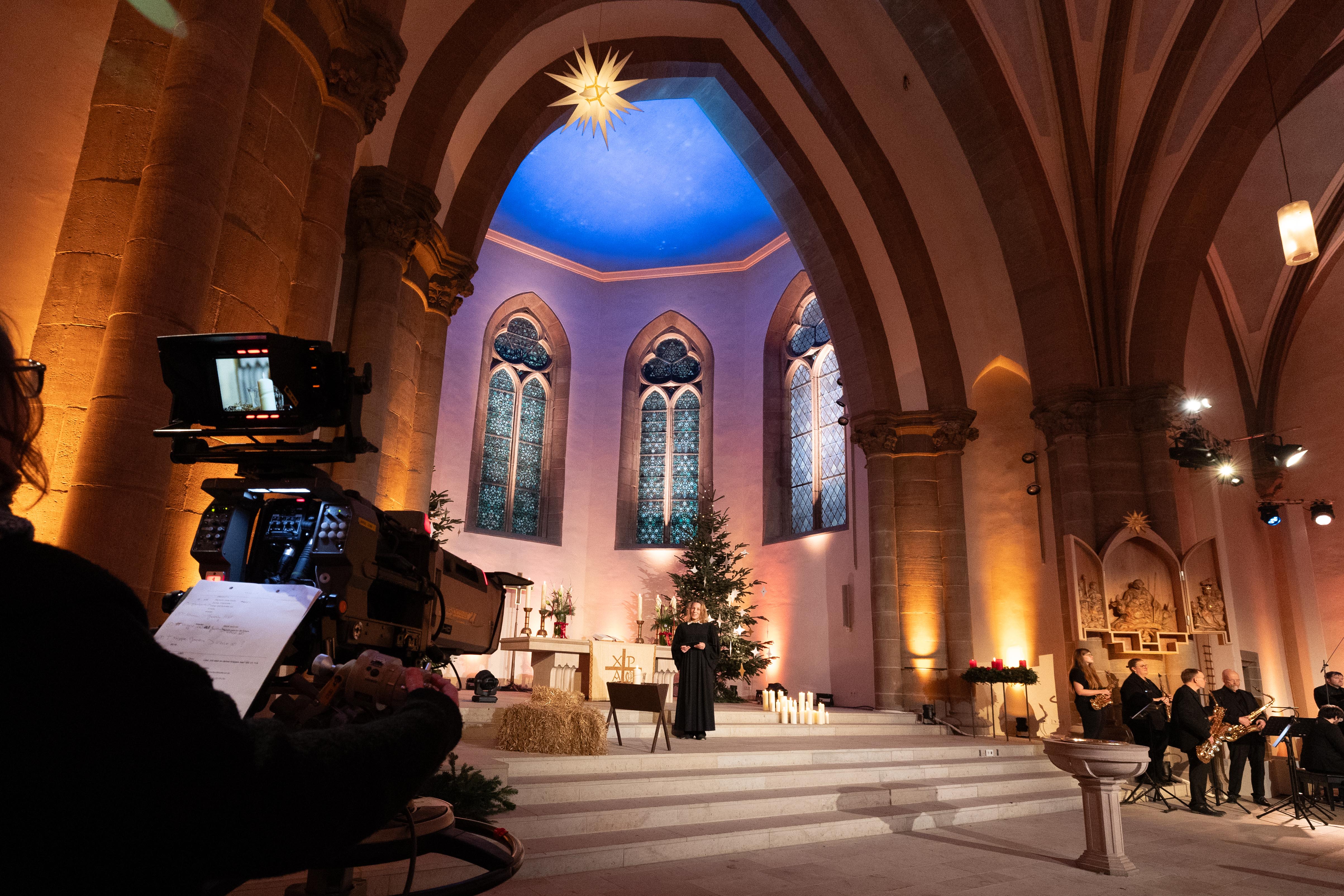Generalprobe zum Evangelischen Heilig-Abend-Fernsehgottesdienst im ZDF mit Pfarrerin Jana Koch-Zeißig unter dem Motto: „Wonach suchst Du?“. Die Weihnachtsgeschichte wird gelesen vom Schauspieler und Theaterpädagogen Thomas Hof, für den weihnachtlichen Glanz sorgt ein Saxophonquintett. Es singt eine Auswahl des Kammerchores der Christuskirche Fulda unter der Leitung von Stefanie Muhl. Der Organist ist Bezirkskantor Tobias Wirth.