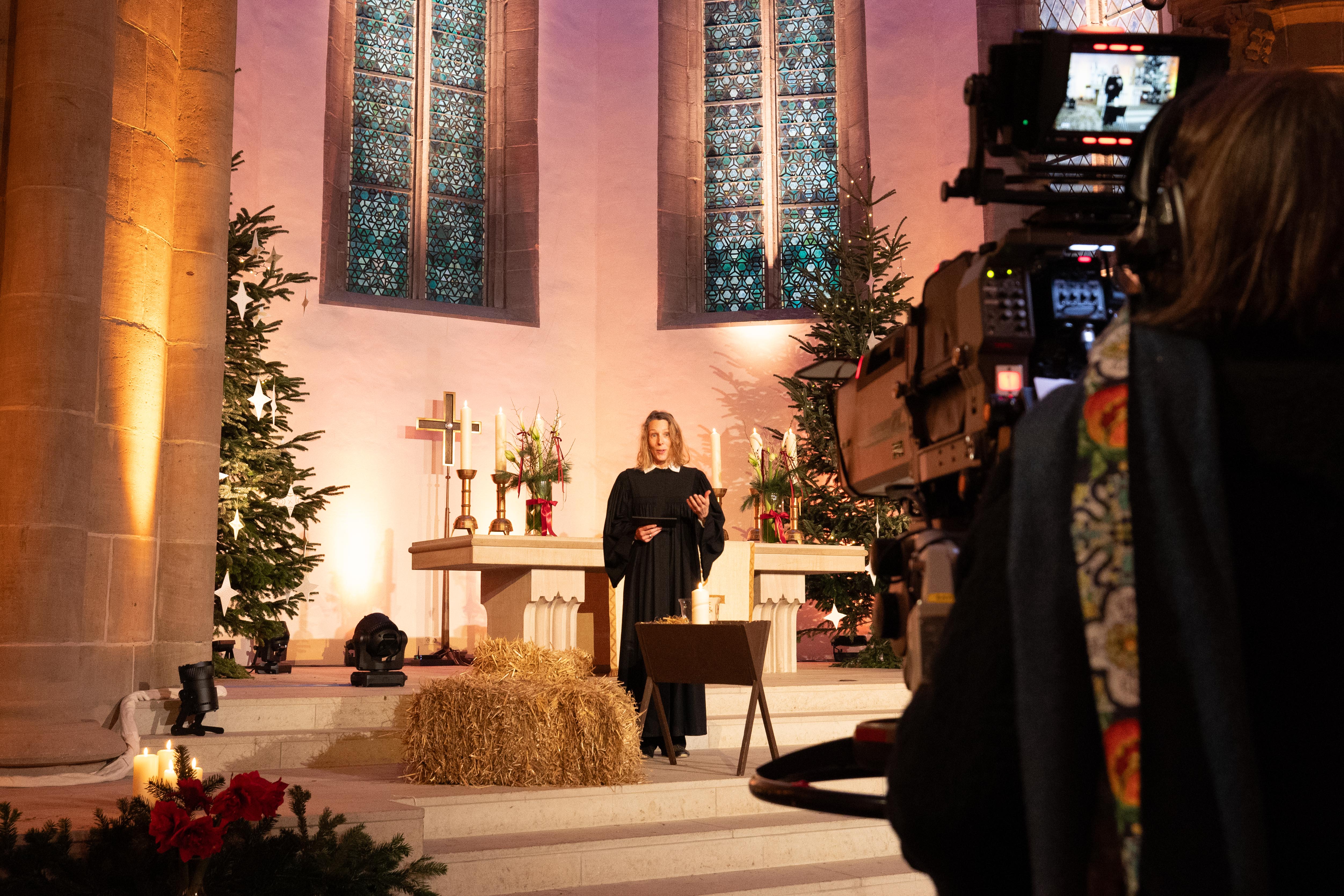 Pfarrerin Jana Koch-Zeißig - Generalprobe zum Evangelischen Heilig-Abend-Fernsehgottesdienst im ZDF mit Pfarrerin Jana Koch-Zeißig unter dem Motto: „Wonach suchst Du?“. Die Weihnachtsgeschichte wird gelesen vom Schauspieler und Theaterpädagogen Thomas Hof, für den weihnachtlichen Glanz sorgt ein Saxophonquintett. Es singt eine Auswahl des Kammerchores der Christuskirche Fulda unter der Leitung von Stefanie Muhl. Der Organist ist Bezirkskantor Tobias Wirth.